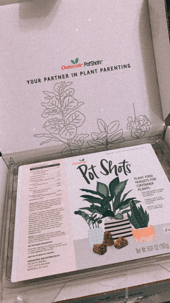 I was really excited to receive Osmocote’s new PotShots because even though I had started to figure out how to keep my plant babies alive, a little extra help never hurts! I loved that they already came in little pre-measured nuggets that fed my plants for up to 6 months, so I didn’t need to worry about maintenance in between. I simply dug a little hole in each of my pots, shoved the little PotShot inside and then covered it up again with dirt- voila!!